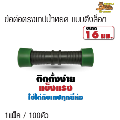 เหมาะกับระบบน้ำ ข้อต่อตรงเทปน้ำหยด แบบดึงล็อก ขนาด16มิล